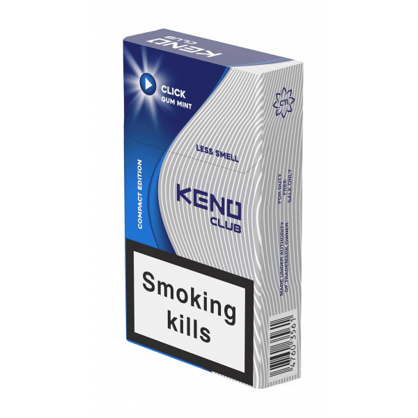 Сигареты Keno Club Click Gum Mint Compact упакованы в блоки по 10 пачек. Качественный сортовой табак (мешка табака, жилка и купажирование — оригинал премиального качества), насыщенный вкус.