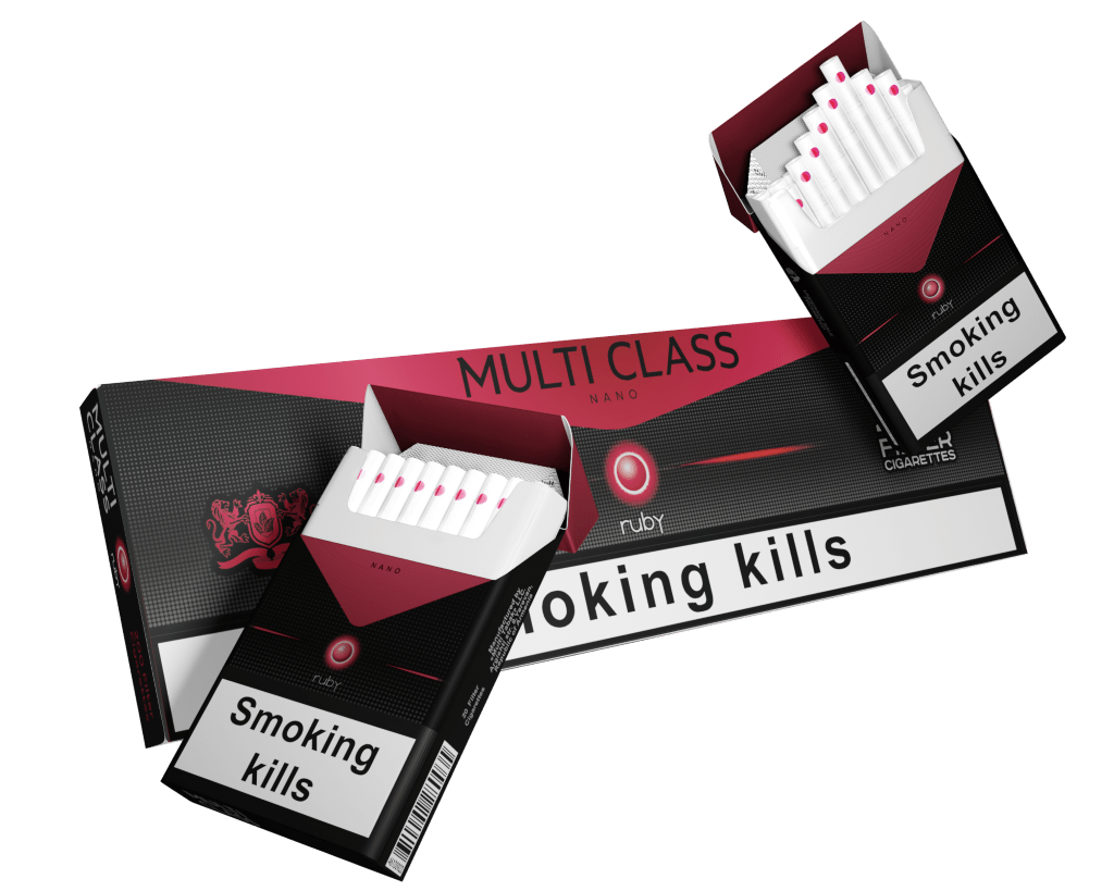 Сигареты Multi Class Ruby Nano упакованы в блоки по 10 пачек. Качественный сортовой табак (мешка табака, жилка и купажирование — оригинал премиального качества), насыщенный вкус.